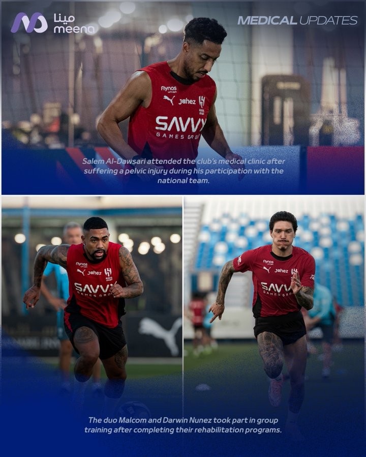 2025-10-17 00:02:06努涅斯和马尔科姆已经康复,于今日正式回归参加利雅得新月的合练